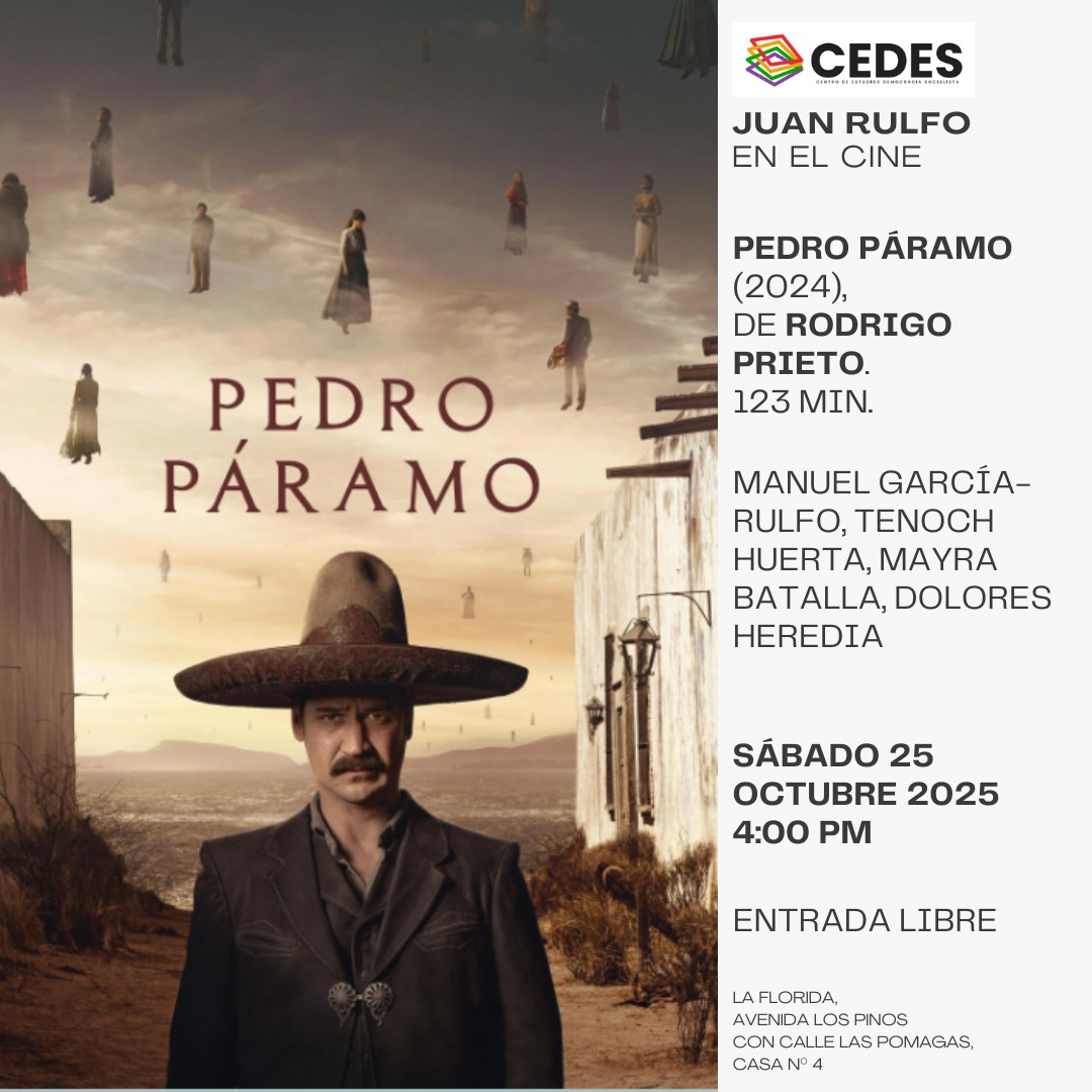 Ciclo homenaje al maestro Juan Rulfo, a propósito de cumplirse 70 años de la publicación de su novela "Pedro Páramo". Les invitamos a disfrutar: - Sábado 25 octubre 2025 Pedro Páramo (2024, 123 min.), de Rodrigo Prieto. Hora: 4 pm. La entrada es libre.